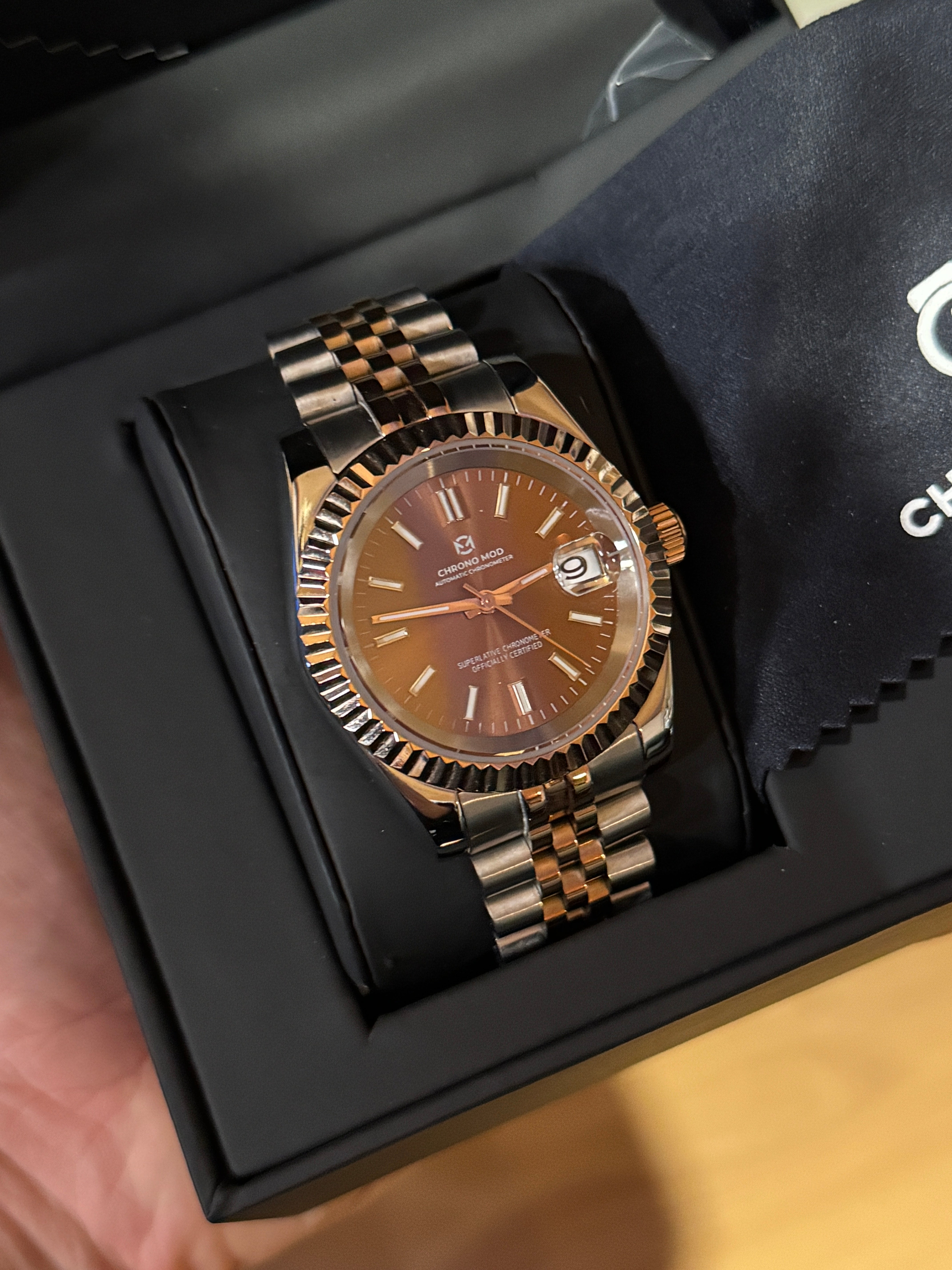 Your custom watch is delivered in a premium leather storage box with its 2-year international warranty card. Securely shipped, ready to wear.