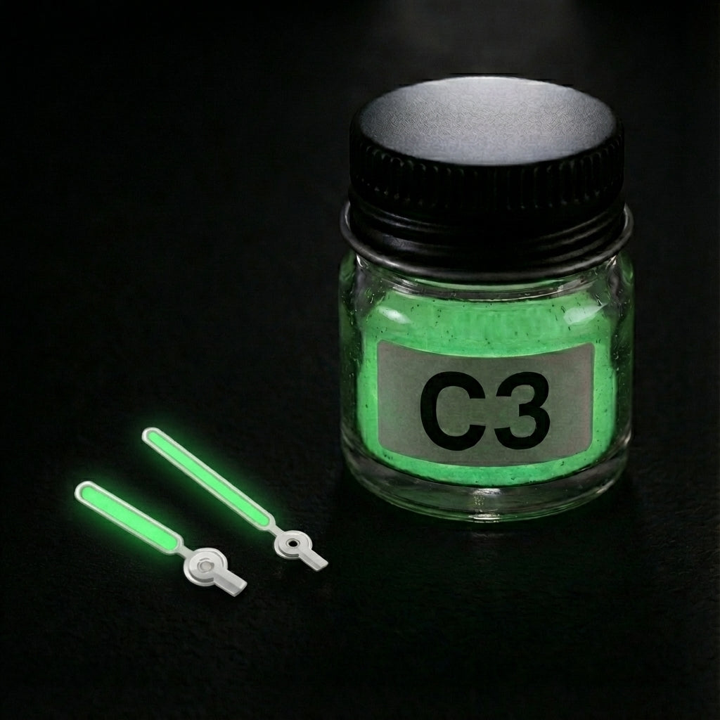 Luminova C3 offers the brightest glow among modern luminous compounds, delivering a strong green illumination in low-light conditions. Highly durable and long-lasting, it ensures exceptional readability day and night.