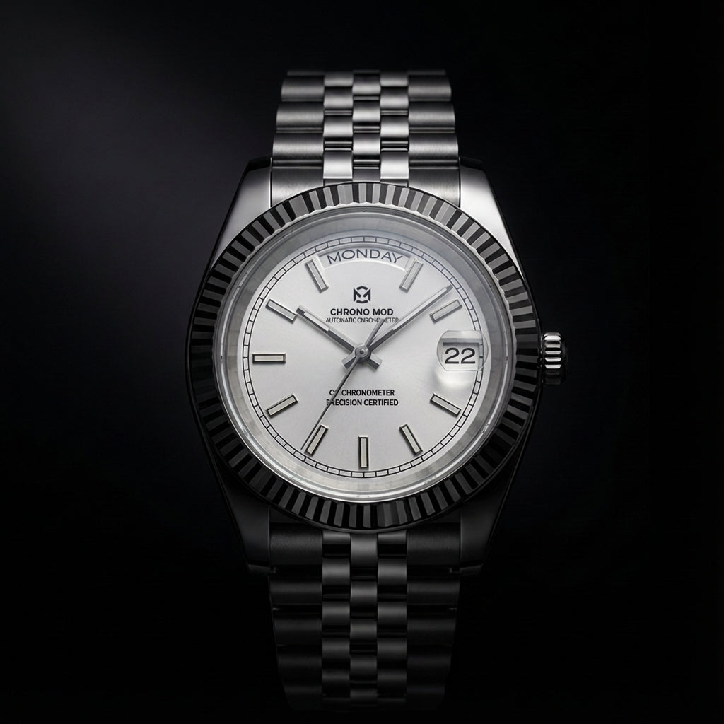 The Bezel is a signature element of timeless watchmaking, defined by its sharp, light-catching facets and unmistakable elegance. Crafted from polished 316L stainless steel, its refined grooves reflect light with a distinctive brilliance, giving the watch a sophisticated and instantly recognizable presence. More than a design detail, the bezel embodies heritage, precision, and prestige — a classic aesthetic that elevates any timepiece with enduring luxury.