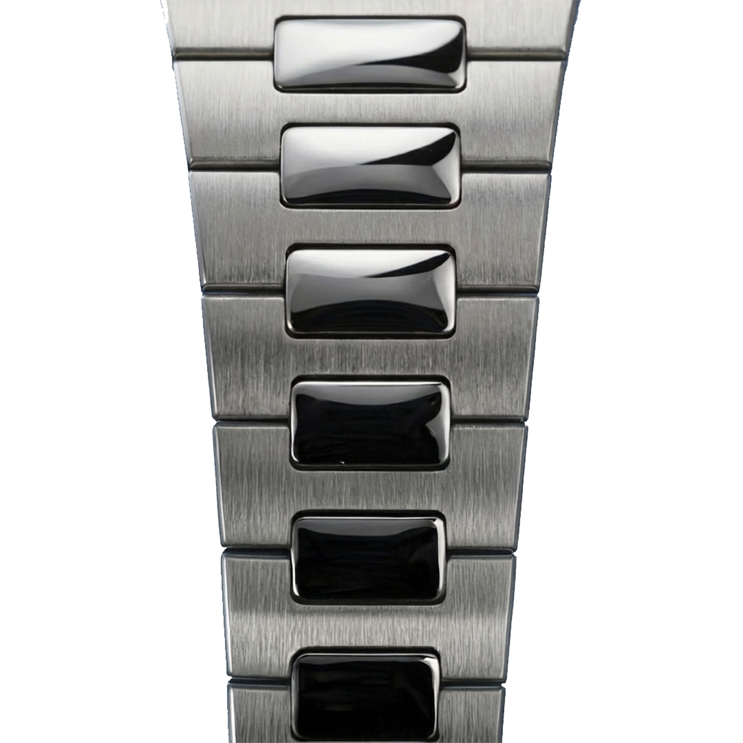 The case features an iconic octagonal silhouette with a seamless blend of brushed and polished finishes, delivering the refined architectural look that defines modern luxury sports watches. Its integrated shape flows naturally toward the bracelet, creating a unified, sculptural profile on the wrist. Crafted from 316L stainless steel, the case offers impressive durability while maintaining a slim, sleek presence. Statement-making yet understated, the case embodies contemporary elegance with a bold, distinctive identity.