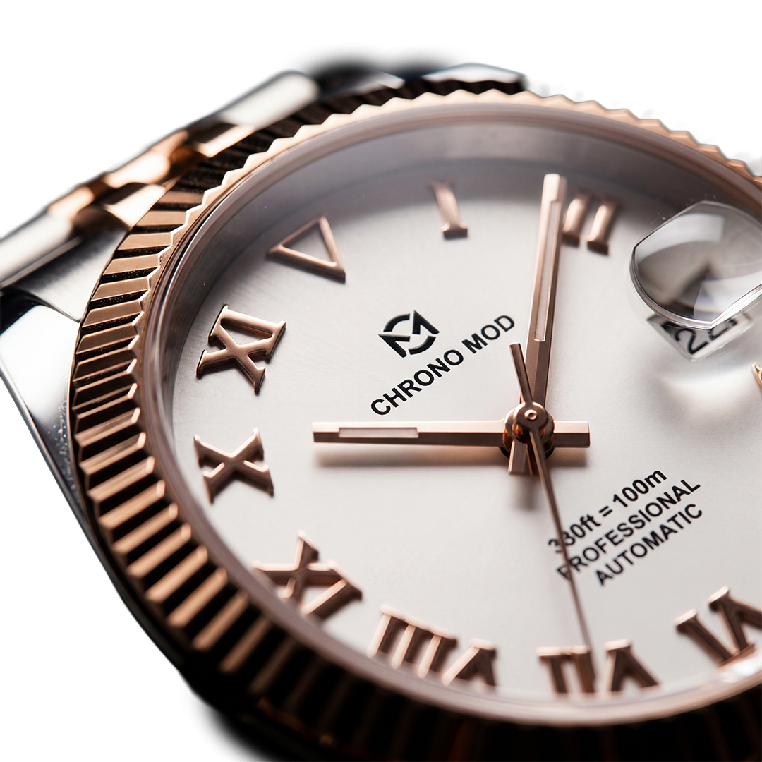 A true mechanical movement that winds itself with every motion of your wrist. Arabic numeral dial with a sunburst finish that shifts in the light. Date window at 3 o'clock, fluted bezel, jubilee bracelet every detail designed to be worn every day and admired every time.
