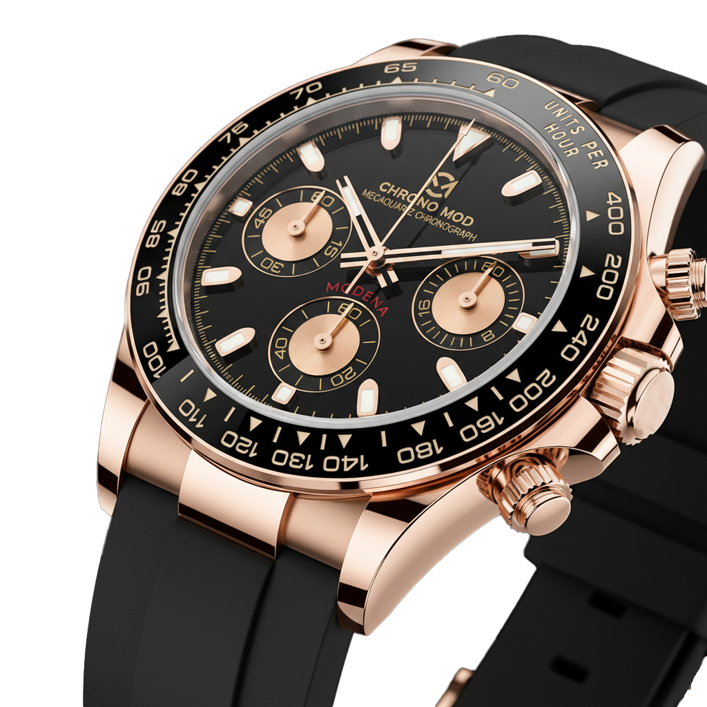 Modena – Black Chronograph · Rose Gold Rubber
