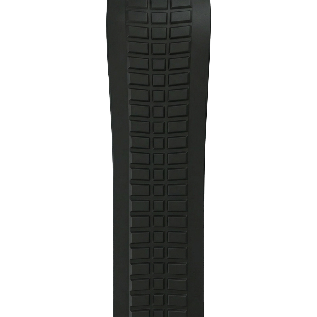 - Bracelet: Black rubber strap – 21 mm