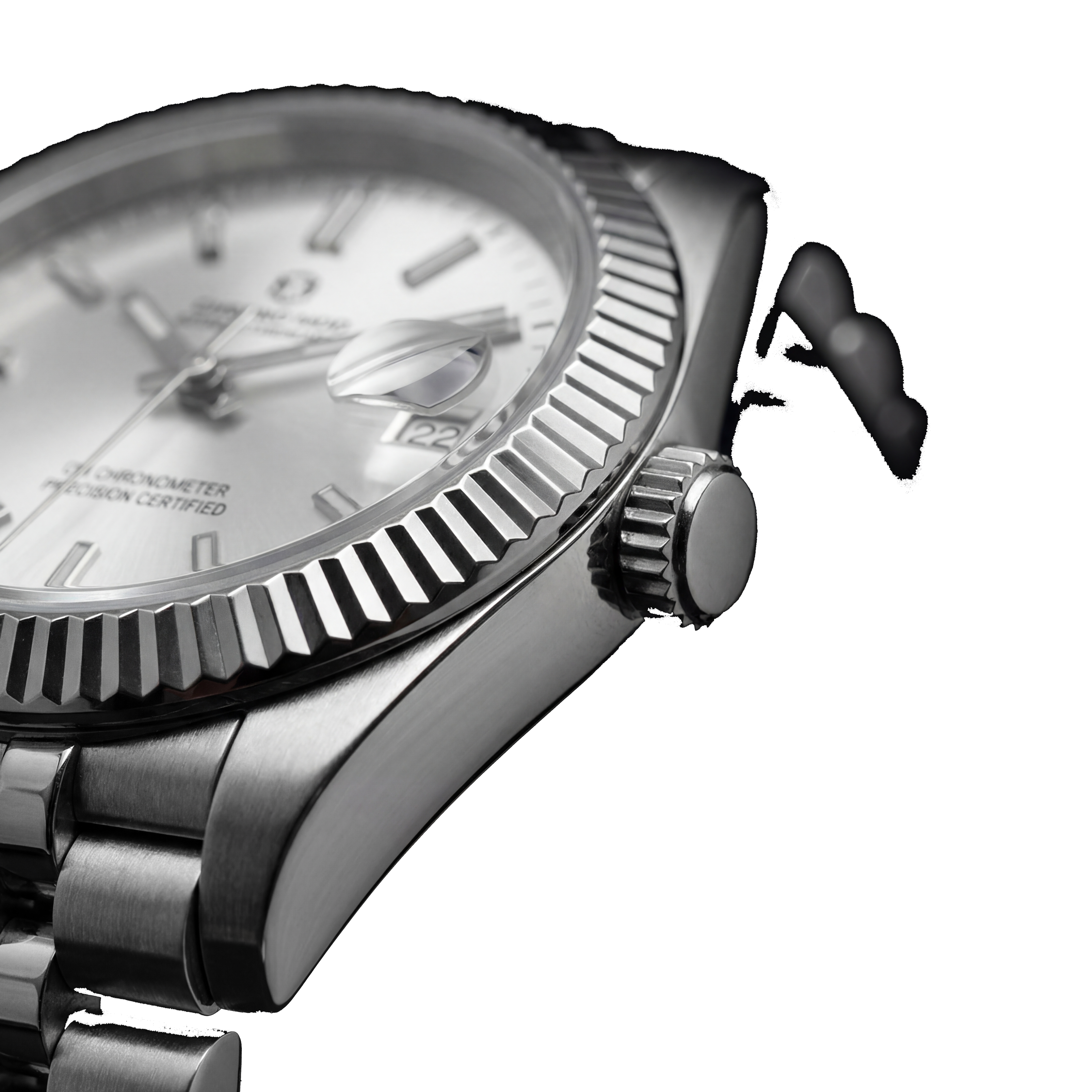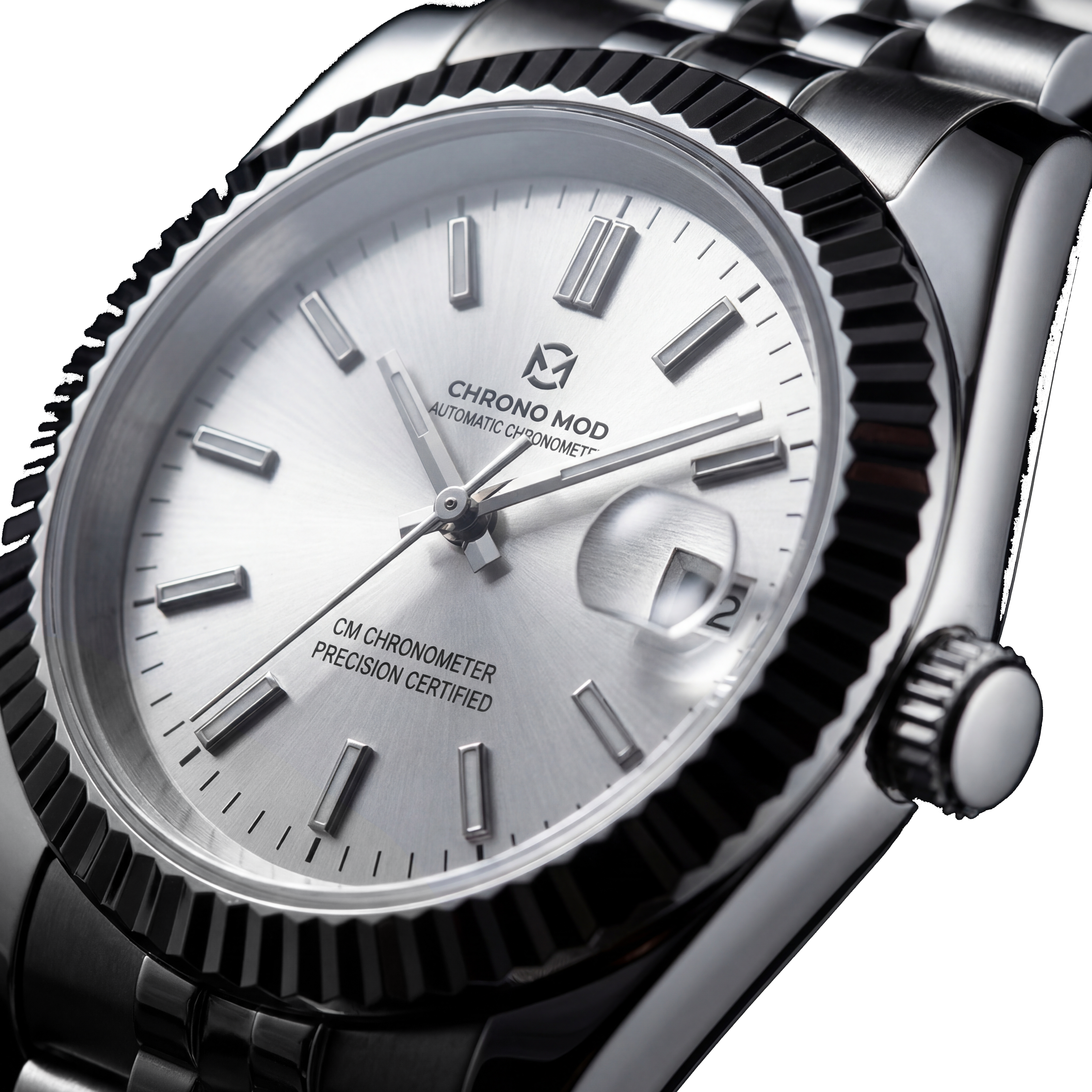 Ein echtes mechanisches Uhrwerk, das sich bei jeder Bewegung Ihres Handgelenks selbst aufzieht. Zifferblatt mit arabischen Zahlen und einem Sonnenstrahl-Finish, das je nach Lichteinfall schimmert. Datumsfenster bei 3 Uhr, jedes Detail darauf ausgelegt, täglich getragen und jedes Mal bewundert zu werden.