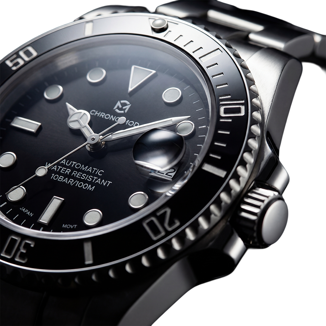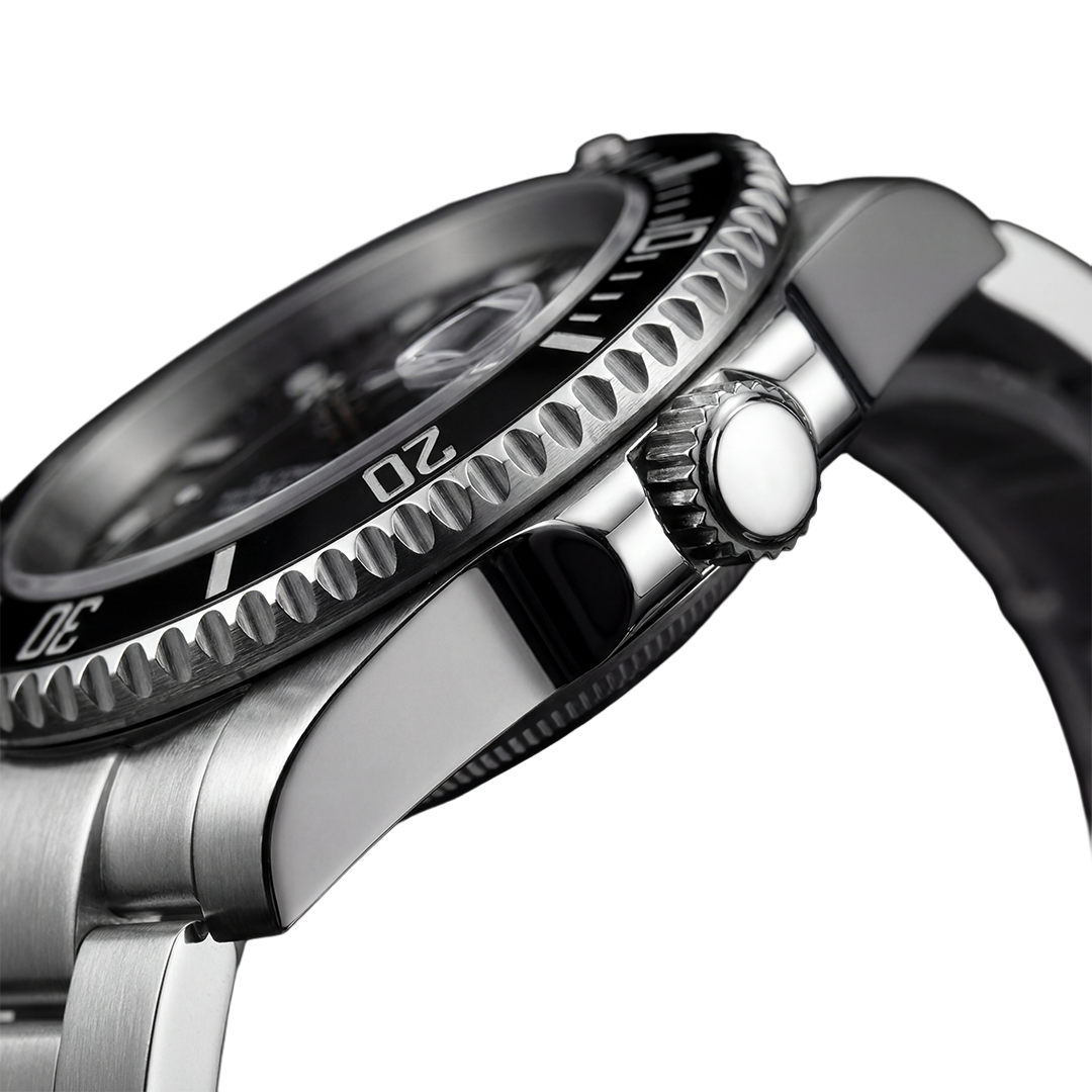 Couronne vissée, lunette en céramique unidirectionnelle, étanchéité 100 m. Conçue pour performer là où cela compte — du fond de l’océan à la vie quotidienne.