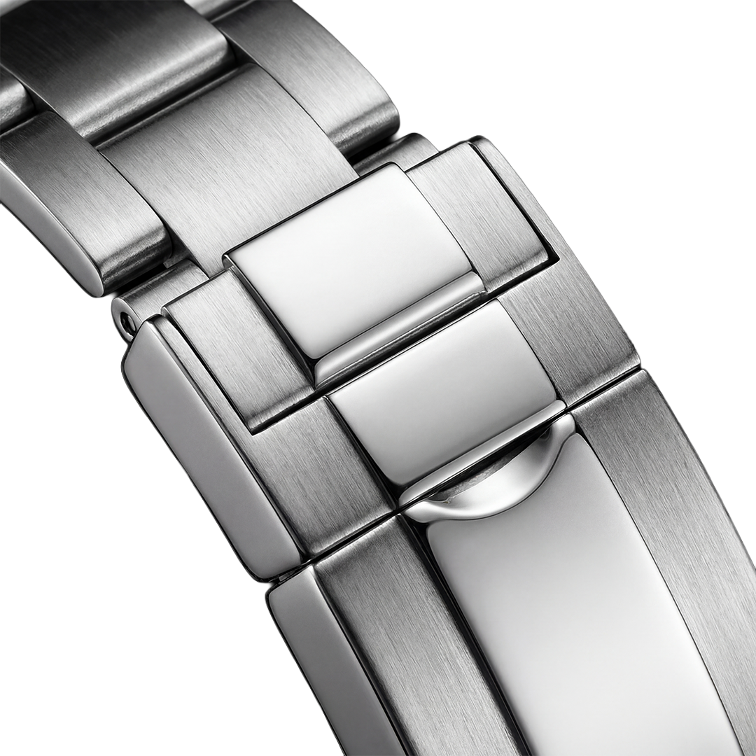 - Bracelet : Oyster en acier inoxydable 904L, 20 mm — alliage haut de gamme utilisé par les marques suisses de luxe, plus résistant à la corrosion que le 316L standard