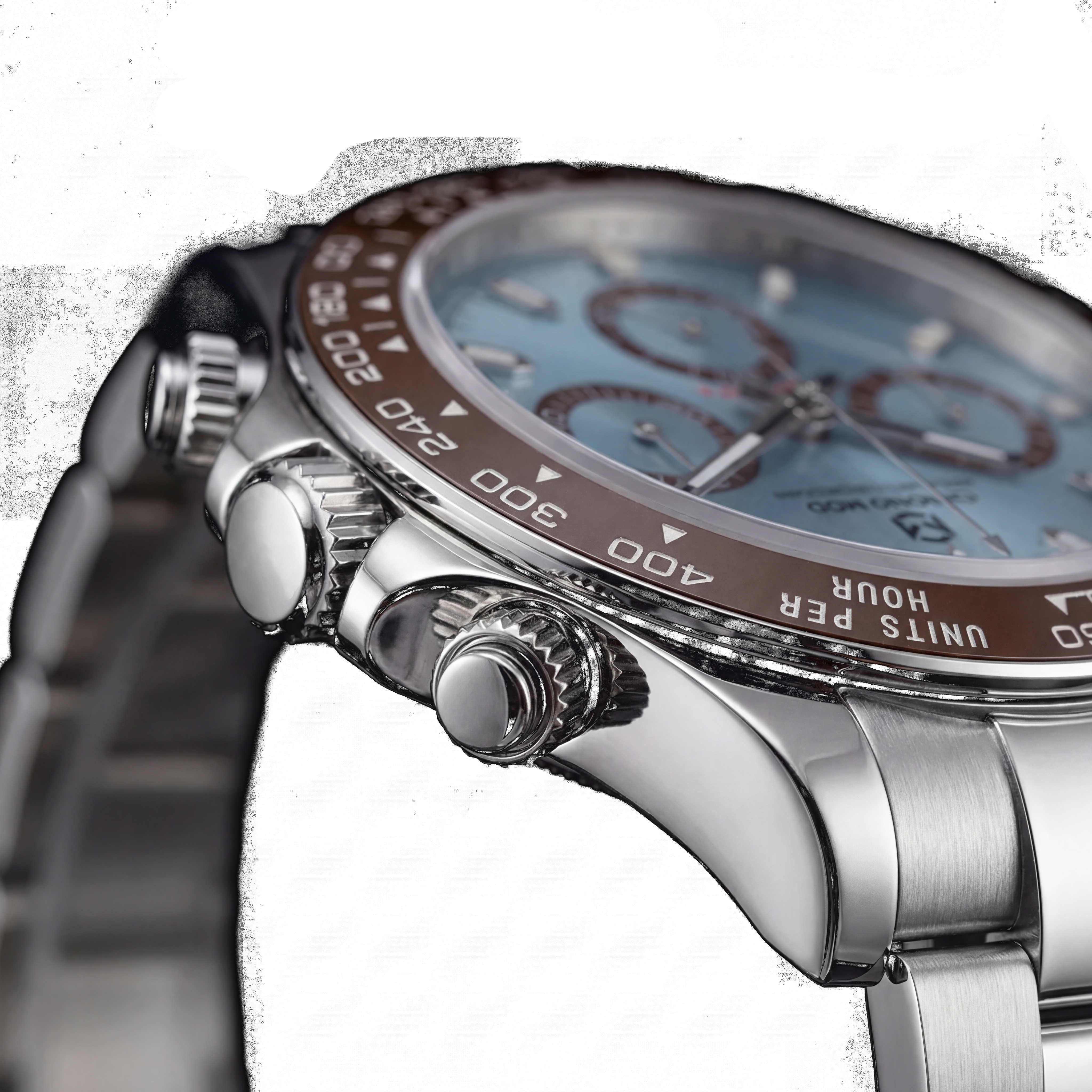 Avvia, ferma, azzera — con una lancetta liscia che scivola, senza ticchettare. Tre quadranti secondari dedicati per una misurazione precisa. Che sia in pista, sulla strada o nei momenti di tutti i giorni — il Modena misura ciò che conta.