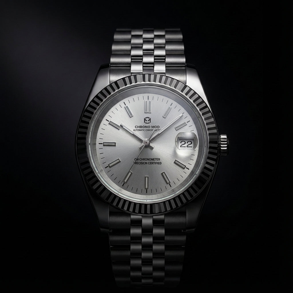 The Bezel is a signature element of timeless watchmaking, defined by its sharp, light-catching facets and unmistakable elegance. Crafted from polished 316L stainless steel, its refined grooves reflect light with a distinctive brilliance, giving the watch a sophisticated and instantly recognizable presence. More than a design detail, the bezel embodies heritage, precision, and prestige — a classic aesthetic that elevates any timepiece with enduring luxury.