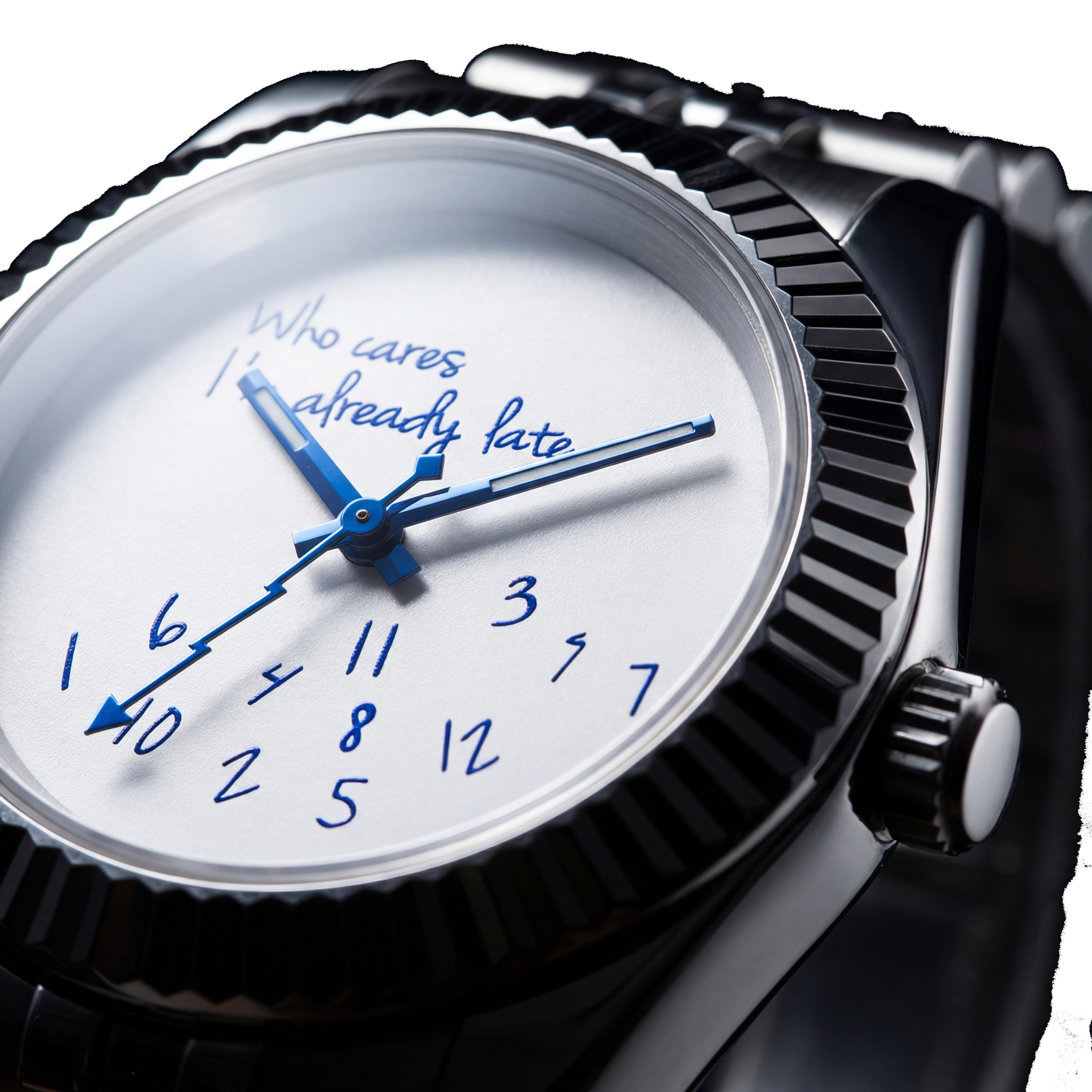 - Dial: “Who Cares I’m Already Late” – 28.5 mm
