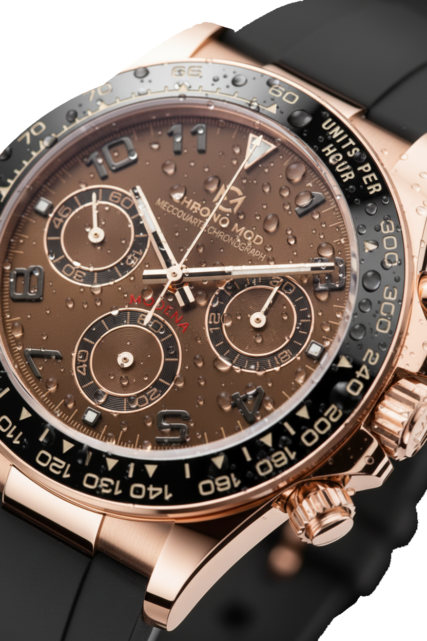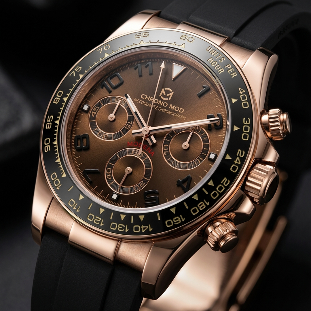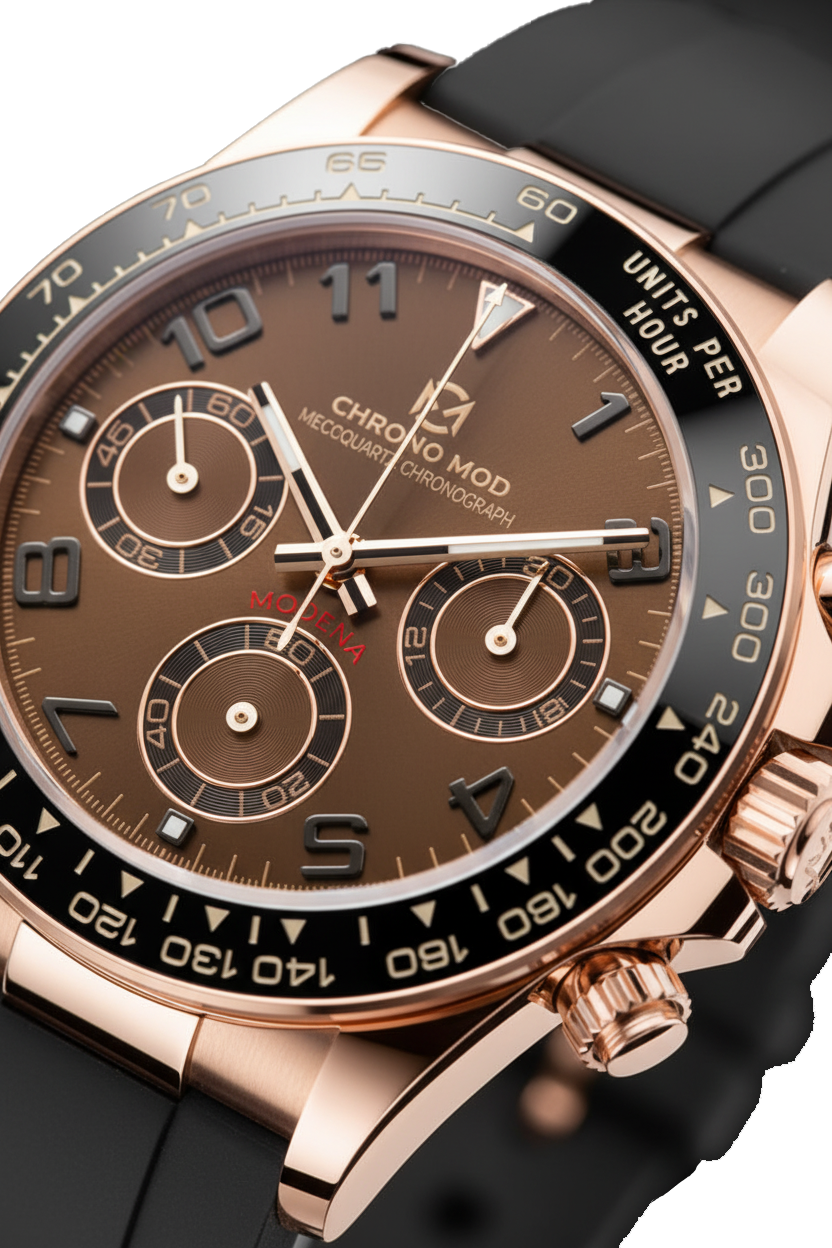 Modena – Chocolate Dial · Rose Gold Chronograph Rubber Strap